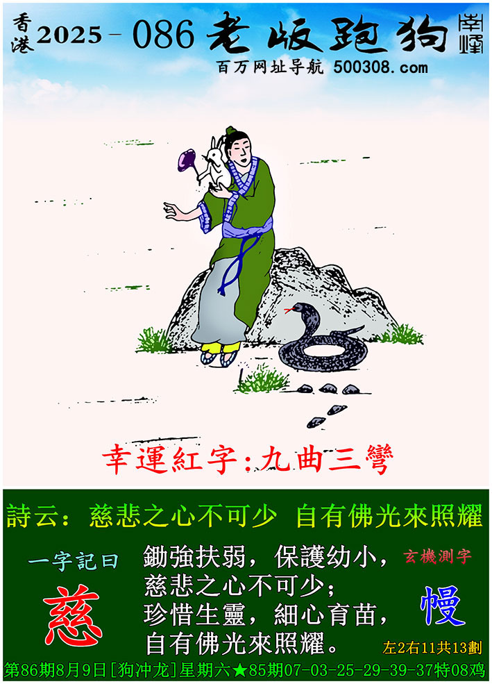 086期:⑨肖 龙牛狗猴鼠兔马羊 蛇13准