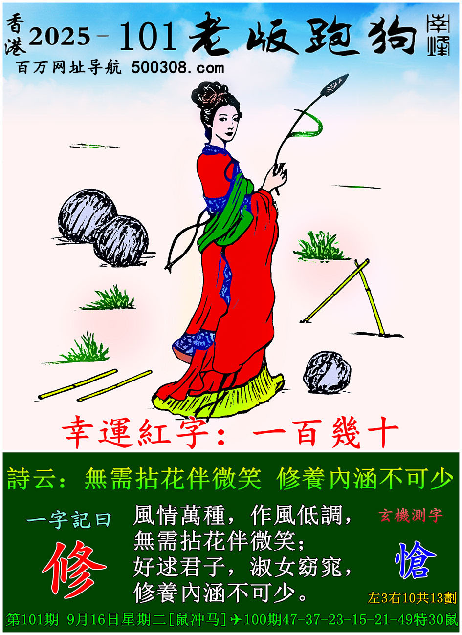 107期跑狗图:一字記之曰:【堆】 晴灘堆沙,小手輕抓。 慾引流泉,疊作尖塔。玄機測字:【墁】 一語中特:三七甘一