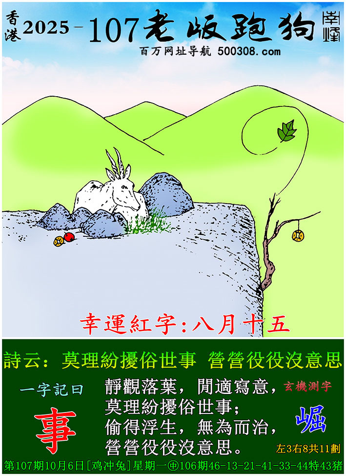 107期(跑狗殺肖)《马肖》开: ?00准(全年少错) 107期(跑狗殺尾)《三尾》开: ?00准(全年少错)