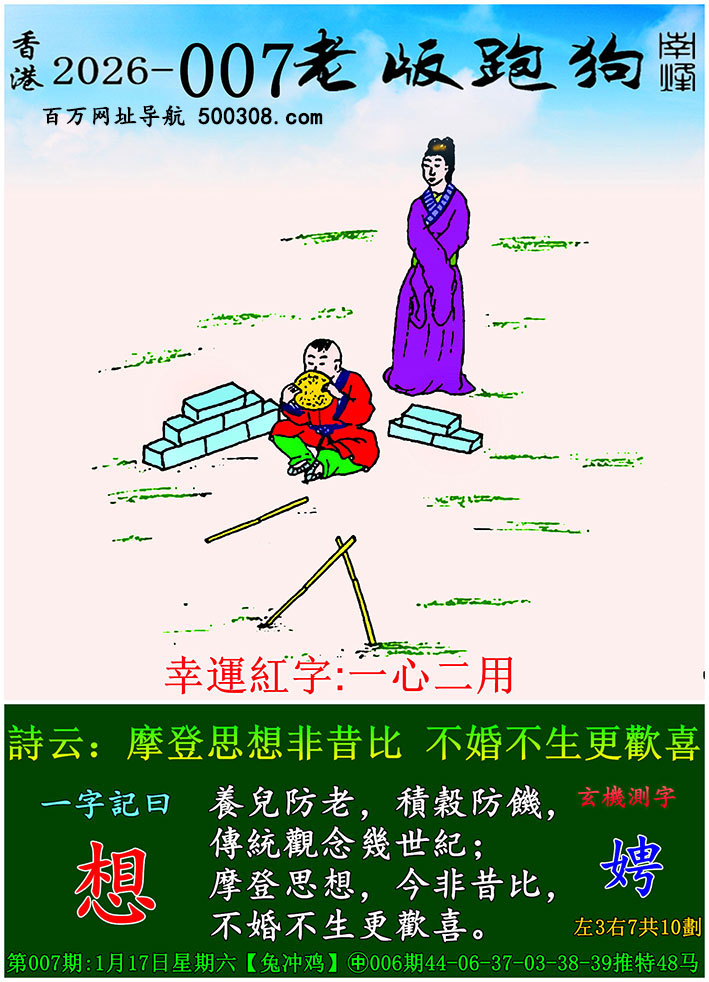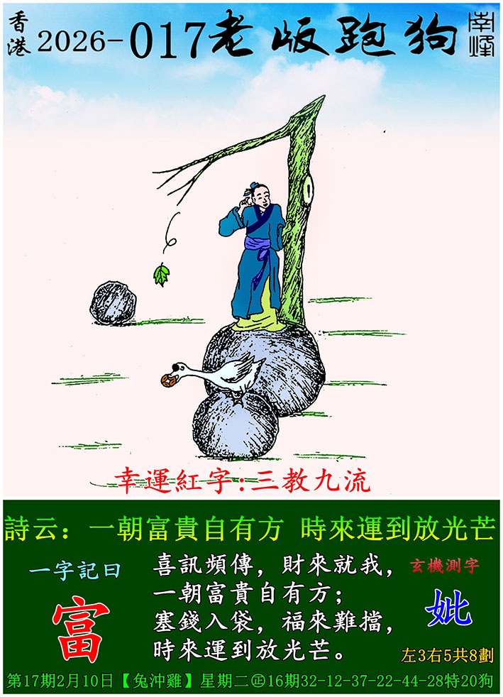 017期跑狗图:一字記之曰:【拋】 拋文棄武,嗜酒如命。 青石為枕,醉不知寒。玄機測字:《縝》 一語中特:三五成群