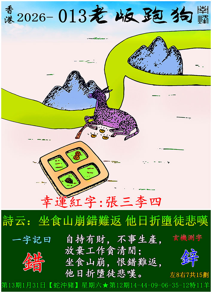 024期老版跑狗一字記之曰:【示】